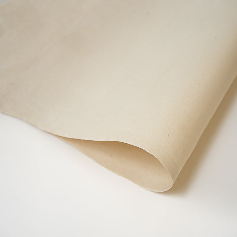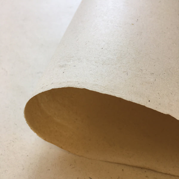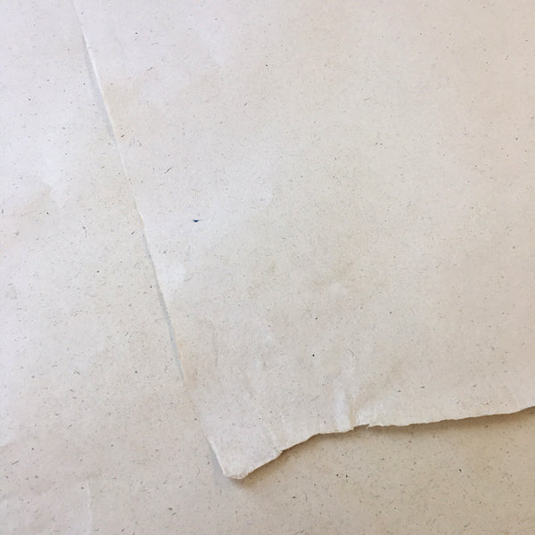 This Indian SUNN burnished handmade paper is made from raw fermented hemp with cooked hemp added. It is the perfect paper for calligraphy, printmaking or mixed media. The surface is coated with wheat starch and a sizing of egg-white and alum and then burnished with agate to provide a naturally sized, surface with an incredible sheen. This large sheet gives you plenty of room for larger sized prints, paintings, or multiple book pages.