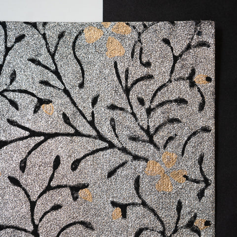 This exclusive design features a 3-color silkscreen, printed on handmade, black recycled rag paper from India.
