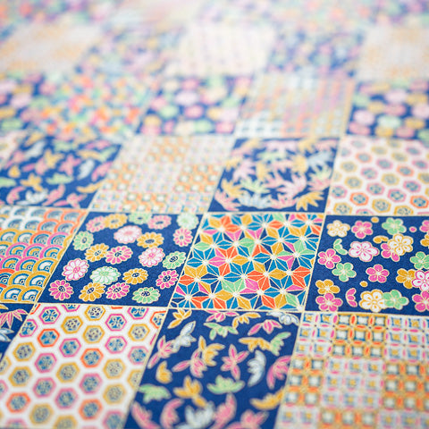 Yuzen paper, or chiyogami, is a silkscreen of traditional kimono patterns, made in Japan.