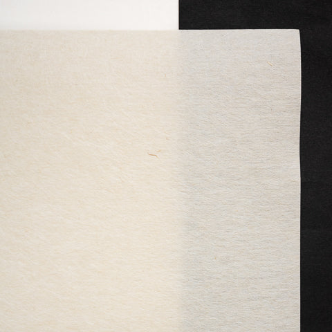 Hailing from Mino, Japan, a papermaking town in Gifu Prefecture, this sheet of washi was specifically made to be used for inkjet printing. Other printmaking methods, such as silk screening, letterpress, and other relief printmaking can be applied, even alternative photography printing.